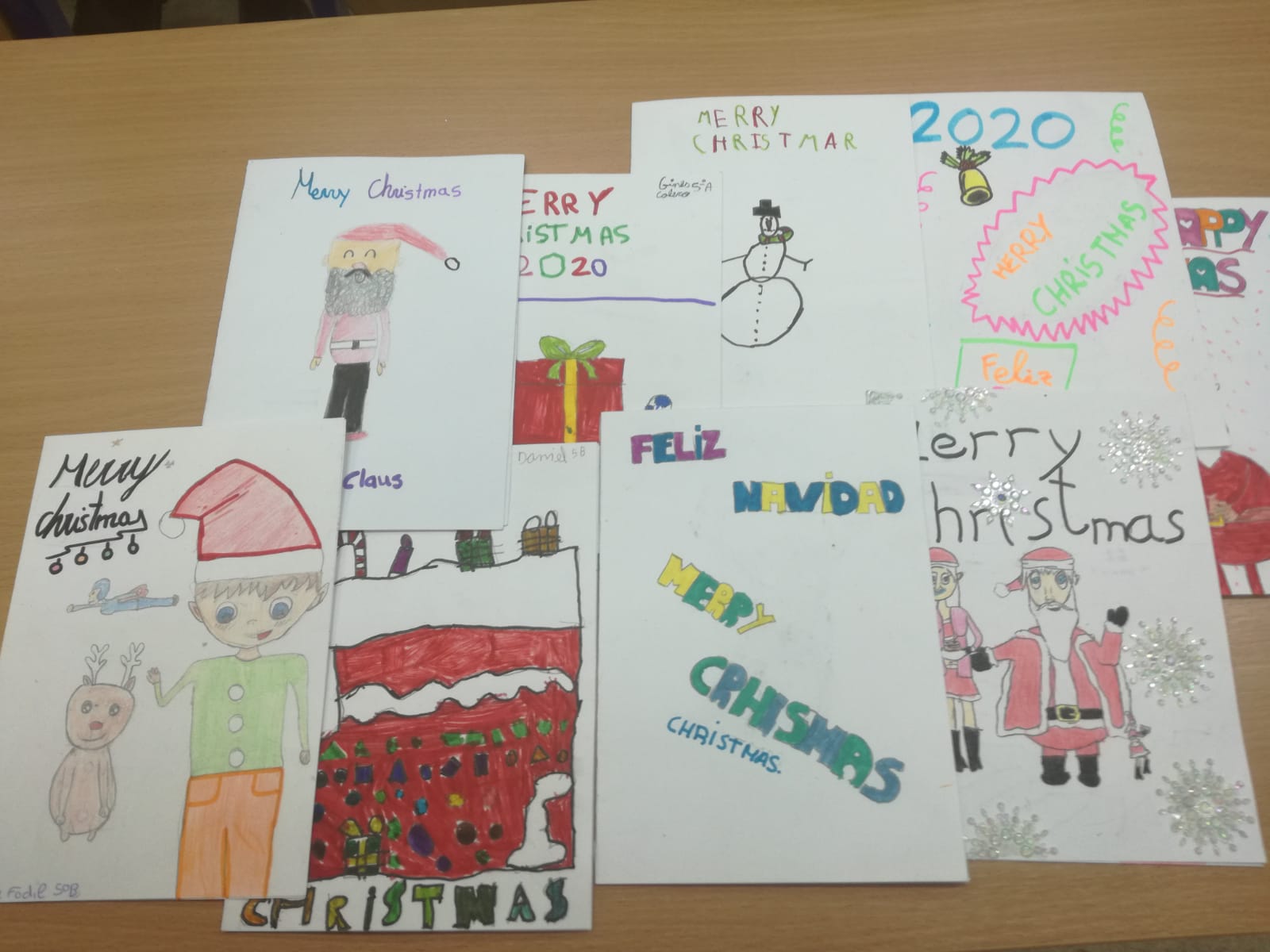 The students write and design Christmas cards, in comic form showing their own Christmas tradition. Some of these cards will be send to our